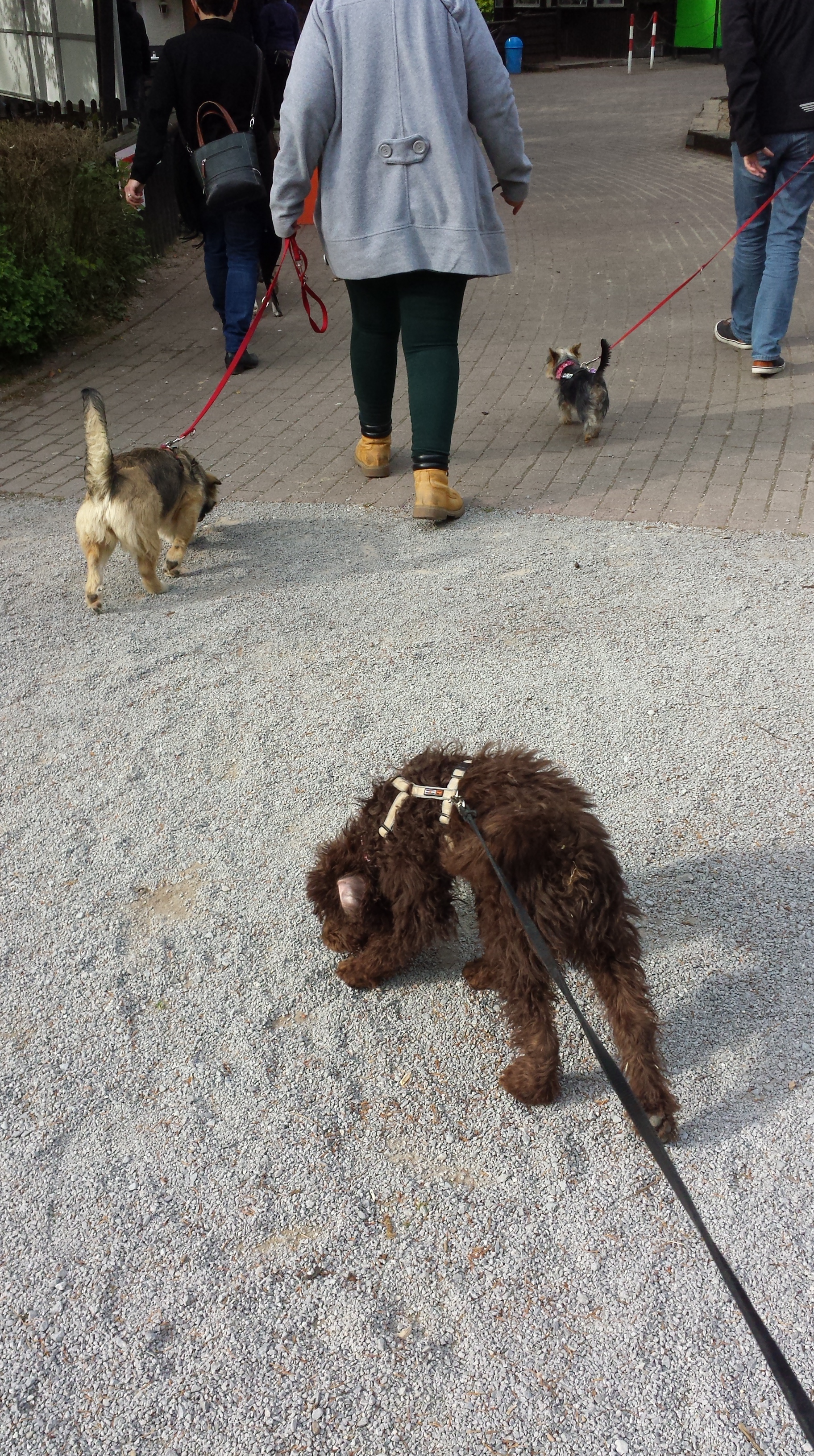 In unserer letzten Stunde habe wir einen kleinen Ausflug in den Tierpark gemacht. Hier wurde die Hunde mit verschiedensten Gerüchen und Geräuschen konfrontiert. Und gerade an diesem Tag war die Kleine kein schüchternes Sensibelchen mehr, sondern ein kleines aufgedrehtes Wollknäuel. Aber ich denke, dass die Welpengruppe uns schon was gebracht hat, gerade für die Sozialisierung.